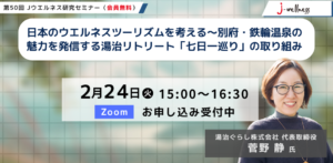 第48回Jウエルネス研究セミナーでは、グローバル・ウェルネス・サミット ボードメンバーの相馬順子氏を迎え、2025年にドバイで開催されたグローバル・ウェルネス・サミット(GWS)の最新動向について報告が行われた。